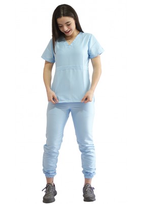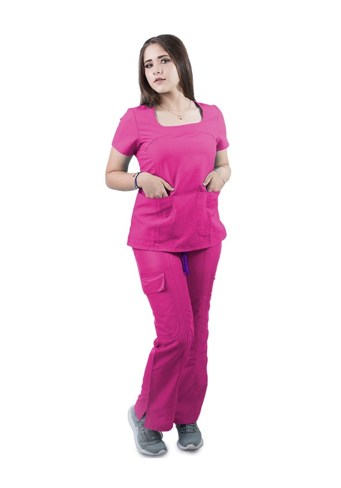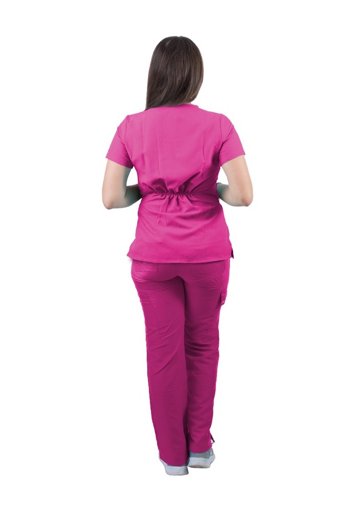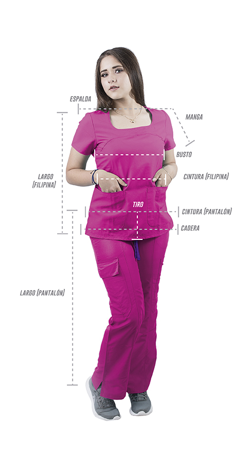 ·Filipina cuello V, bolsas frontales y cintas ajustables en espalda